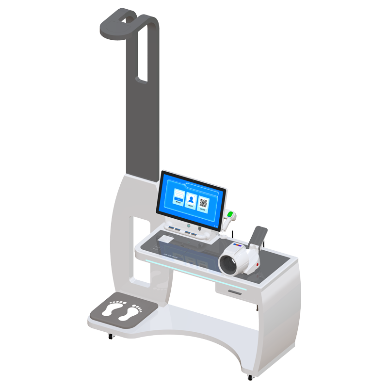 產品特點 | 一體化設計、安裝維護理簡單,安裝移動輪,移動方便 全程動畫語音引導自助操作, 多鐘身份識別:身份證、手機號、二維碼、人臉識 15.6英寸電容高清觸摸屏,操作簡單自助 安裝高清攝像頭,可拓展遠程視頻 標準A4體檢報告單 尺寸:長1.4米*寬0.5米*高2.4米 支持第三方平臺數據對接 |
